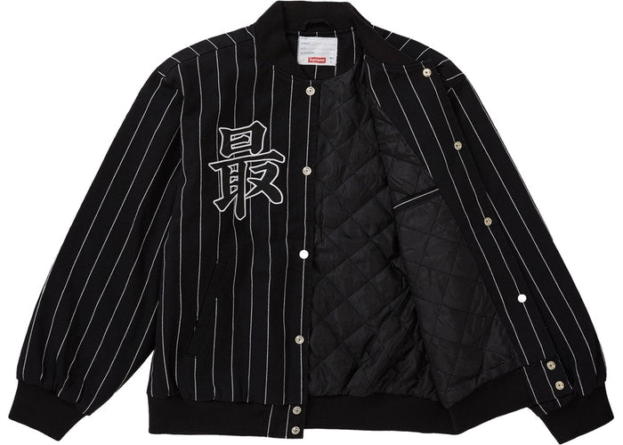 Pinstripe Varsity Jacket (Black)